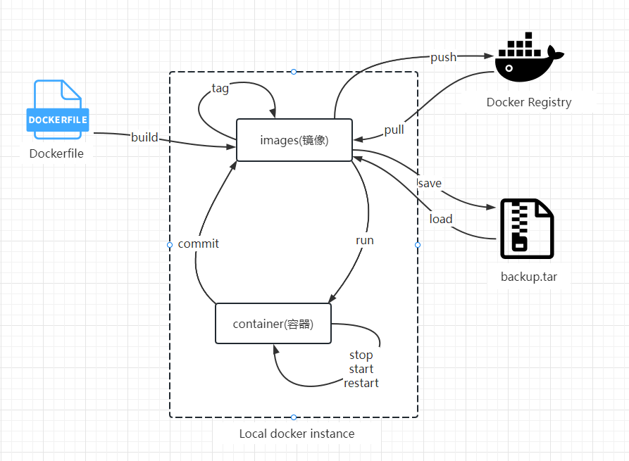 - 容器(container):镜像的一个可运行实例。容器运行时,会在镜像的只读层之上创建一个可写的容器层(Container Layer)。你可以创建、启动、停止、移动或删除容器。
